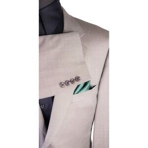 Jos. A. Bank Suit Coat Jacket Blazer Sz 44R Solid Beige Wool Two Button EUC