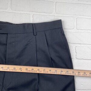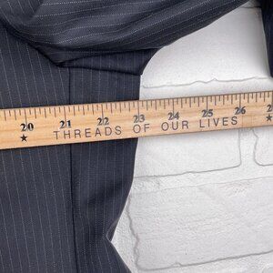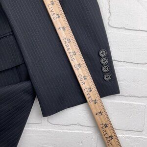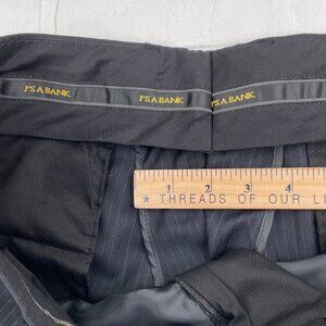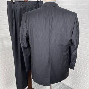 This Jos A Bank Suit in black and white is a classic for all men. The size is 43L 34Wx30L, featuring a stylish two-piece design with a striped pattern. Made of quality polyester material for comfort and durability.