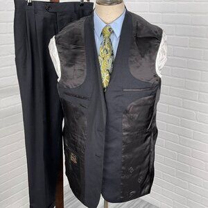 Jos A Bank Suit Men 43L 34Wx30L Black White Gordon Signature Gold Wool Classic