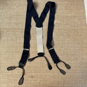Jos A Bank Suspenders Navy Grosgrain Black Leather Button On Braces Mens