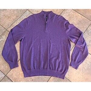 Jos A Bank Sweater Men Large 1/4 Zip Pullover Pima Cotton Purple Preppy Casual