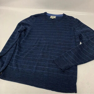 Jos A Bank Sweater Men XL Long Sleeve Blue Stripe Cotton Stretch Crew Neck