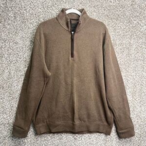 Jos. A. Bank Sweater Men’s Large RESERVE Brown 100% Cotton Neck Zip Pullover Swe