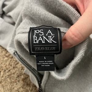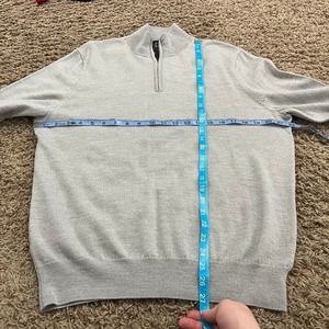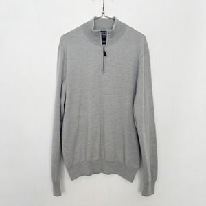 Jos A Bank Sweater Mens Size Large Gray Knit Merino Wool Quarter Zip Pullover