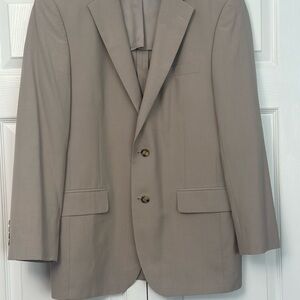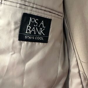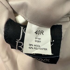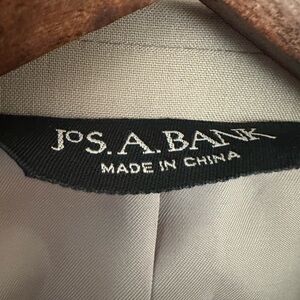 This Jos. A. Bank sport coat in a versatile tan color features a structured silhouette with notched lapels and a single-breasted design. Crafted for a polished look, it is ideal for both professional and casual settings.