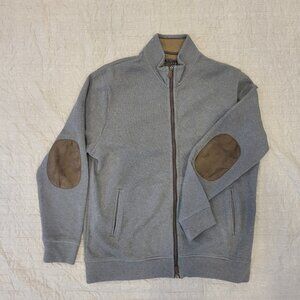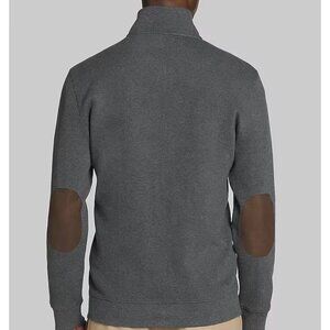 Medium Grey Mock Neck, Taylored Full Zip. Textured cotton fabric that adds a touch of visual interest to your look. Reinforced elbow patches offer a subtle nod to heritage style. TAILORED FIT, ZIP FRONT, 100% COTTON, MACHINE WASHABLE