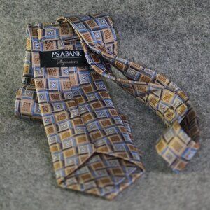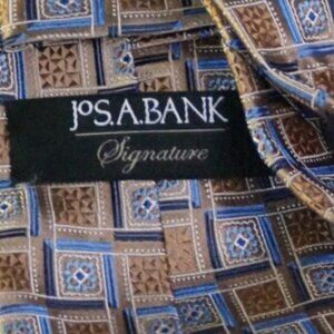 Jos. A. Bank Tie Brown Blue Beige Square Pattern Signature Silk Blend Menswear