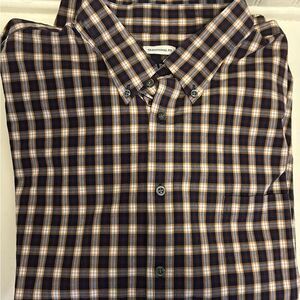 Jos A Bank classic plaid design. Button-up style. Perfect for casual wear. Made from a quality cotton with a bit of spandex for stretch.