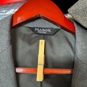 You are purchasing a Jos A Bank Traveler Blazer Mens 39R Slim Fit Gray Wool Suit Jacket Business Coat. It is gently pre-owned and in great shape with no visible issues observed with a few pinholes in the sleeve - check out the pics for details.