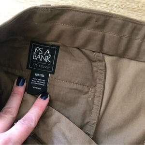 Jos A Bank Traveler Dark Khaki Pleated Dress Pants Size 40x30 GUC