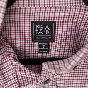 Jos. A. Bank Traveler Men’s Button-Up Shirt Size Large Red Blue Check Plaid Traditional Fit - see photos for measurements