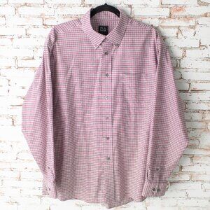 Jos. A. Bank Traveler Men’s Button-Up Shirt Size Large Red Blue Check Plaid