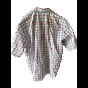 The Jos. A. Bank traveler shirt in XL size is a classic fit, short sleeve button-up shirt made of 100% cotton fabric. Featuring a multicolor striped pattern, this shirt is ideal for travel occasions. The button-down collar and colorful theme make it a stylish option for men looking for a comfortable and fashionable shirt for casual wear.
