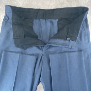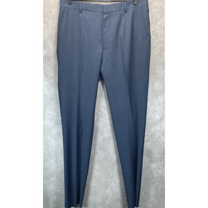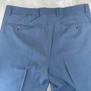 Jos A Bank Traveler Pants Men 38W/40L Reg Blue Slim Flat Front 100% Wool No Hem