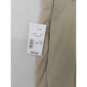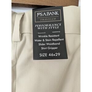 Jos A Bank Traveler Performance Pleated Cuffed Slider Waistband Chino Tan 46x29