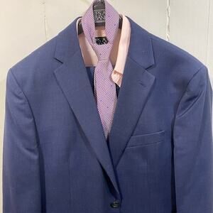 Jos A Bank Traveler Slim Fit Blue Wool Suit Blazer 42R Pants 36x27 w shirt & tie