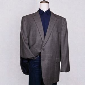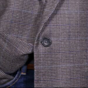 Jos A Bank Traveler Sport Coat Blazer Mens 52R Brown Blue Plaid 2 Button