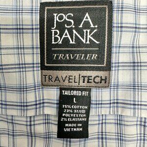 Jos A Bank Traveler Tailored Shirt L Blue Plaid Cotton Blend LS TravelTech