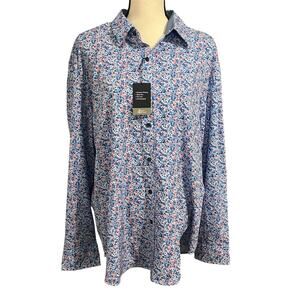 Jos A Bank Traveler Women's NEW Blue White Floral Long Sleeve Button Down Sz XL