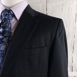Jos A Bank Traveler's Collection 42R 100% Wool 2 Button Charcoal Striped Suit Jacket