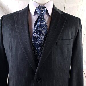 Jos A Bank Traveler's Collection 42R Wool 2 Button Charcoal Striped Suit Jacket