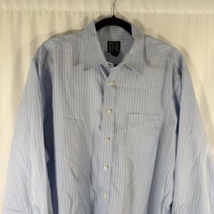Jos A Bank Traveler's Shirt Men 17.5 35 Blue Striped Button Up Long SleeveTailor