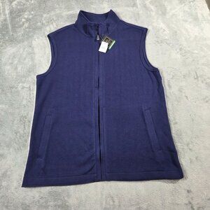 Jos A Bank Vest Mens Medium Blue Herringbone Tailored Fit Reserve Full Zip NEW