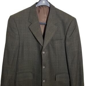 Jos A Bank Windowpane Check Blazer Wool Alpaca Sports Coat Size 40S Short Brown