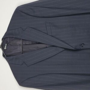 Jos A Bank Wool Blazer Subtle Pinstripe Navy Two Button Rear Vent Mens 42L