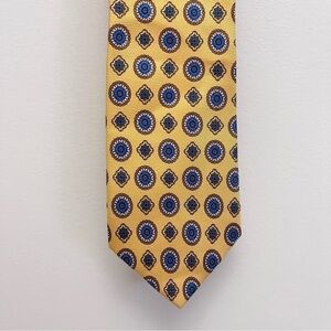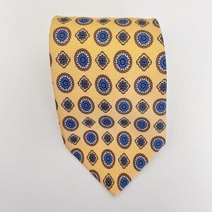 Jos. A. Bank Yellow Medallion Print Hand Sewn 100% Silk Tie