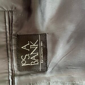 JOS A BANK suit in grey 40L. Nice looking suit costs a pretty penny to buy these days.