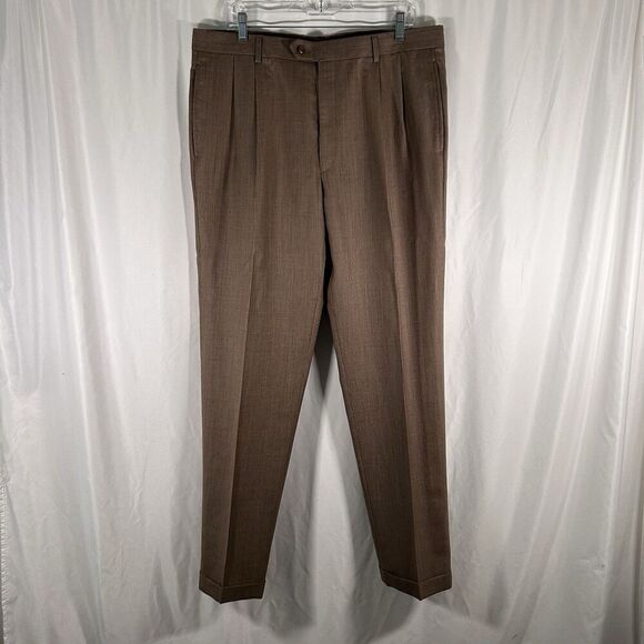Jos A Banks Executive Collection Pants Men's 36R Brown 100% Wool Pleated