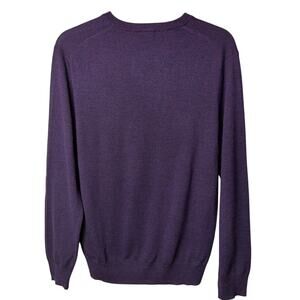 Jos. A. Bank Merino Wool V-Neck Sweater in purple, size L. Soft, lightweight, and versatile with a classic preppy office look. Ideal for work, business casual, travel, and layered styling.
