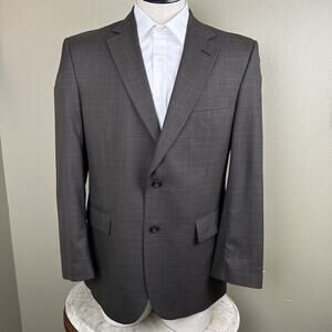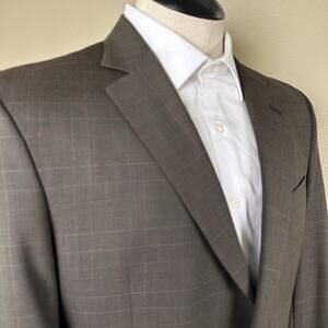 Jos A Banks 40R Brown Plaid 2 button, 1 vent Sport Coat . Excellent pristine condition . 100% wool. My FLAT measurements are : Chest between axilla 21", Waist above top button 20", sleeve 24" zfrom top of ahoulder seam to end of cuff, length from bottom of collar to end of hem 31", and Shoulders between seams 19". Thank you for your consideration if this Brown plaid sport coat in breathable wool by Jos A Banks !