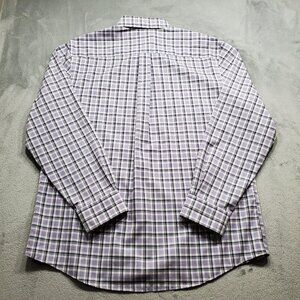 Jos. A Banks Traveler Long Sleeve Button Up Plaid Shirt Purple White Men Sz L