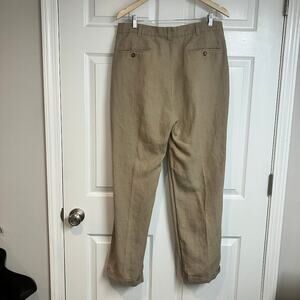 Jos A Bank Travelers Collection 100% Linen Pleated Cuffed Trouser Pants 35x30