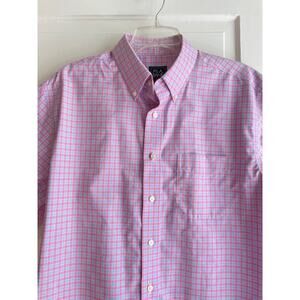 Jos. A. Size Large Short Sleeve Button Front Pink & Blue Plaid Shirt