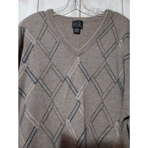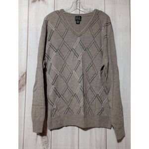Jos A Bank Sweater Men's Extra Large Tan Argyle Wool Blend Crew Neck