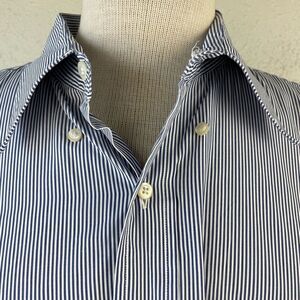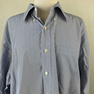 Jos. A. Banks Blue and White Striped Button Down Dress Shirt Size 17-36 EUC
