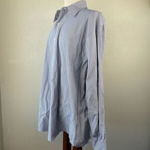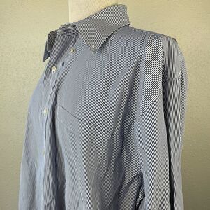 Classic and stylish dress shirt by JoS A. Banks featuring a button down collar and striped pattern. It’s dry cleaned and in excellent preowned condition. It measures 26 inches across the chest laying flat and is 33 inches in length from shoulder to hem.
