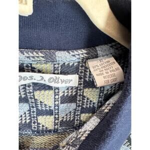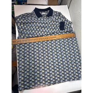 Jos. J. Oliver Long Sleeve Polo Collared Geometric Blue Shirt Men's Size XL