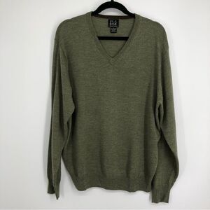 Jos. A. Bank Signature Mens Sweater Large 100% Merino Wool Green V Neck Pullover