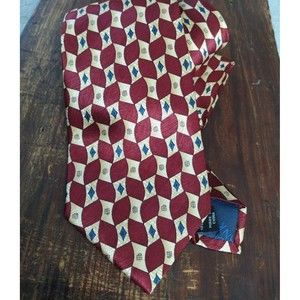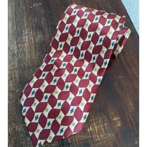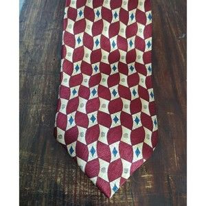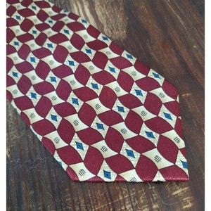 Jos.A.Bank 100% Silk Necktie Geometric Formal Print Red Gold Blue