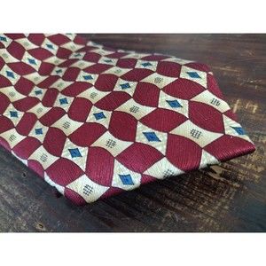 Elevate your style with this stunning Jos.A.Bank Executive Collection Silk Necktie. The tie features a beautiful and intricate geometric pattern in bold shades of red, gold, and blue, making it perfect for any formal occasions. Crafted from high-quality silk, this tie boasts a luxurious feel that will surely leave a lasting impression.