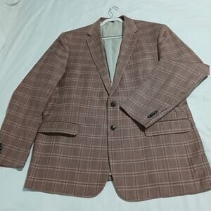 Jos.A.Bank Brrr Comfort blazer in size 48L. This stylish blazer features a blend of linen and wool, offering both comfort and sophistication. The taupe color and window pane plaid pattern make it a versatile addition to your wardrobe. Fully lined for a polished look and fabulous condition. It’s even better in person! Get this amazing blazer now! Tailored fit.