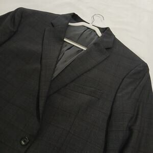 Jos.A.Bank Brrr Comfort Blazer 48L Slim-Fit Wool Charcoal Grey Window Pane Plaid