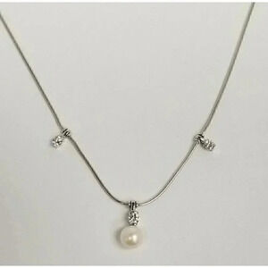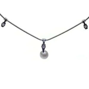 Jose Hess 18kt White Gold Diamond and Pearl Necklace 15.5" .30CTW