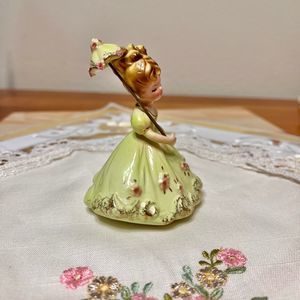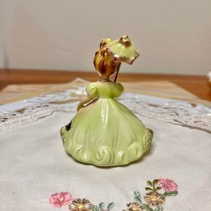 Josef Originals Vintage Southern Belle with Umbrella Figurine, Baby Shower Girl Green Dress Ceramic Figurine.