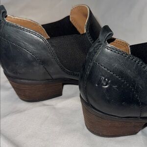 Black leather booties size 38. DAPHNE 17 by Josef Seibel, a stacked heel ankle boot with a shallow collar and bluntly pointed toe, rendered in premium quality leather. Pair with flowing crepe skirts and neat cloches for hippie chic or go urban in cropped jeans and a turtleneck sweater.