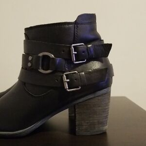 Josef Seibel Black Leather Wallet Ankle Booties Buckle Straps Size 8/38 Preppy